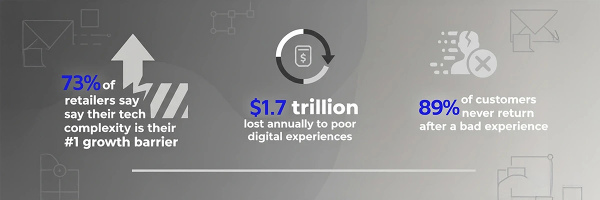 Stop losing 67% of customers at checkout. Start converting browsers into lifetime buyers with our proven unified commerce solutions. An intelligent commerce layer that knows every customer, optimizes every interaction, and scales without limits. No more duct-taped systems. No more lost sales. Just pure growth.